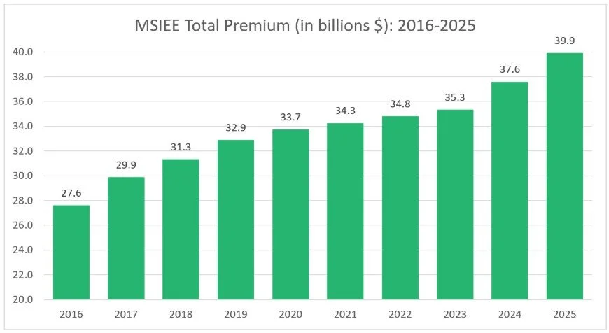 The 6.2% growth in premium that is realized in 2025 is the second consecutive year where growth exceeded 6.0%. This follows growth ranging from 1.5-1.6% in 2021-2023. Additionally, the $39.9 billion in premium establishes a new market high.