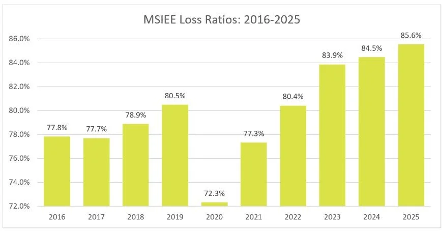 The Medicare supplement market demonstrated strong growth in premium again in 2025. While the total lives decreased slightly, the loss ratio saw its largest single year jump since 2021, when the industry was coming out of the COVID-19 impact of 2020. This information is based on the experience reported within the Medicare Supplement Insurance Exhibit (MSIEE) that carriers submit within their Annual Statement to the NAIC*.